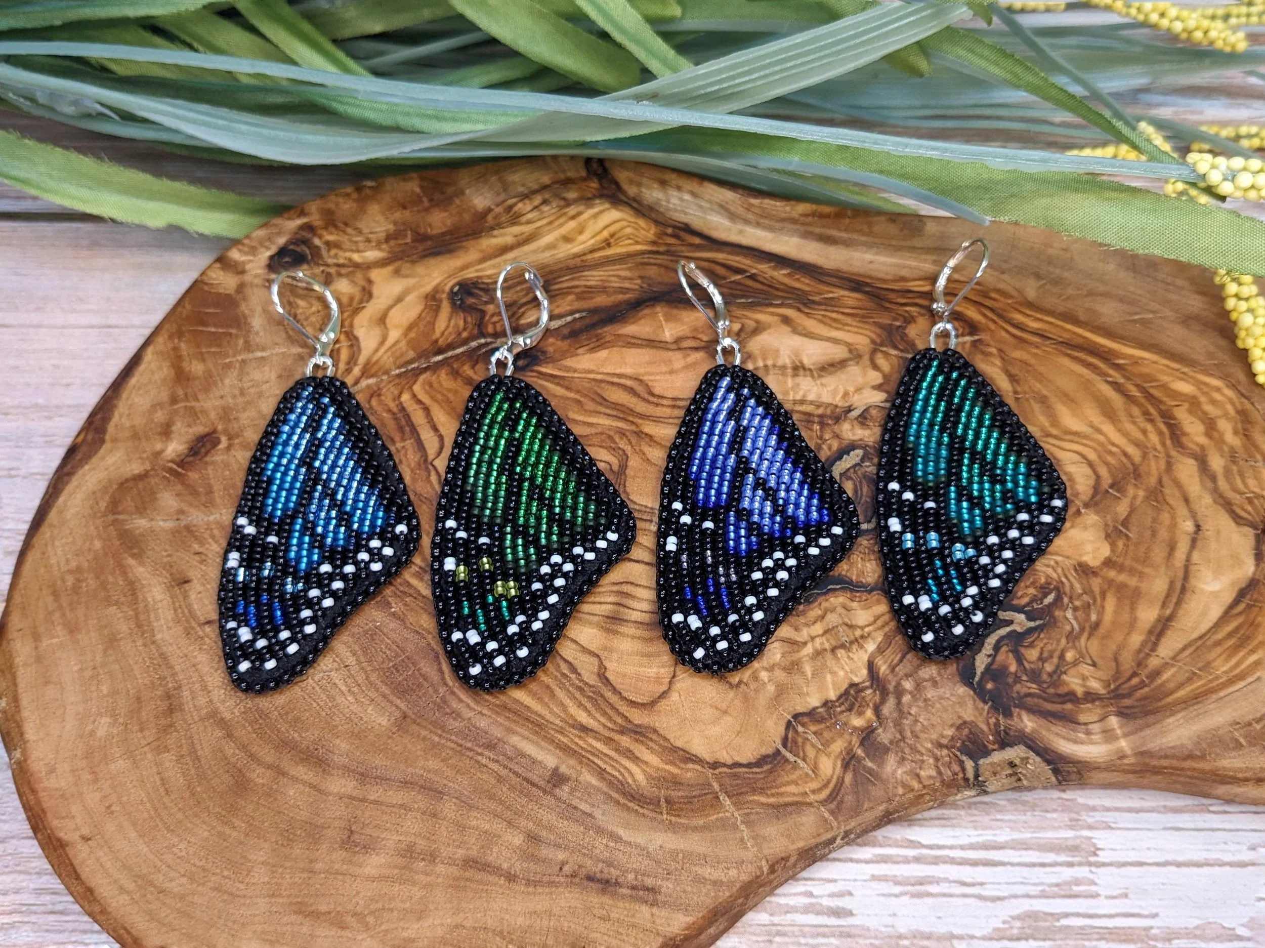 Categories: All Necklaces and Pendants Earrings Beadwork earrings Fringe Earrings Stud earrings Hoop earrings Bracelets Hair Clips Pins and Brooches Stickers Beadwork earrings | Fringe Earrings | Stud earrings | Hoop earrings | Multichrome black and gold fringe earrings $85.00 Small pansy flower earrings $110.00 Monarch butterfly wing earrings $170.00 Sold out Small size pansy flower earrings in soft purple and yellow $110.00 Beaded acorn earrings $70.00 Large silver-lined pansy flower earrings $140.00 Silver-grey and blue fringe earrings $100.00 Green Monarch butterfly wing earrings $170.00 Cool-toned fringe earrings with faux opal centres $100.00 Large pansy flower earrings $140.00 Purple and pink fringe earrings $90.00 Blue Monarch butterfly wing earrings $170.00 Purple and gold fringe earrings with amethyst $90.00 Multichrome blue fade fringe earrings $90.00 Brown and copper fringe earrings $90.00 Black and turquoise fringe earrings with faux opal centres $90.00 Black and blue fringe earrings $90.00 Dreamy beaded earrings in blue, purple and teal $45.00 Large Monarch butterfly wing earrings $200.00 Sold out Turquoise and blue beaded stud earrings $60.00 Swirling green beaded stud earrings $60.00 Red and gold beaded stud earrings $60.00 Blue and fuchsia stud earrings $60.00 White and purple beaded hoop earrings $80.00 1 inch beaded hoop earrings $45.00 Iridescent green beaded fringe earrings $80.00 Long purple fringe earrings $100.00 Beaded tassel earrings $55.00 Blue and white beaded fringe earrings $100.00